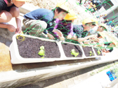 <写真2:ごうやを植える子ども達です。>