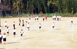 5年生は体育の時間に、バスケットボールやハードル走に挑戦しています。
