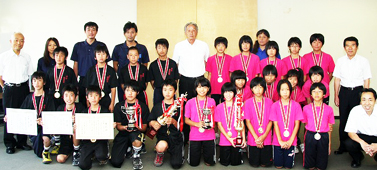 女子の部準優勝の桃園小と一緒に記念撮影をしました>