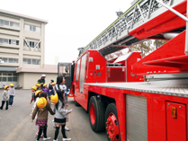 避難訓練の後、消防車を見学させて頂きました。