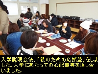 入学説明会後、PTA主催「親のための応援塾」が開かれました。
