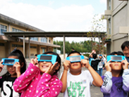 観察用のめがねを通してみると、太陽の形をはっきりとみることができます。