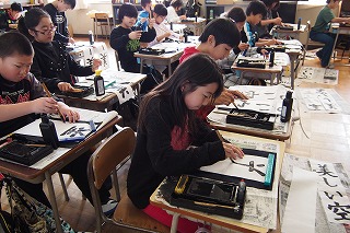 子どもたちの力作は「書き初め展」1月19・20日にご覧ください。