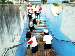 一週間後には、6年生がプールの中をきれいに掃除をします。