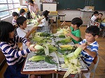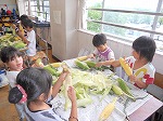 全校児童の分のトウモロコシの皮をむいたのは2年生。