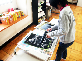図工の時間、3年生は版画をしています。