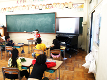 実物投影機を使うと、手元のものを簡単に大型のテレビに映すことが出来ます。