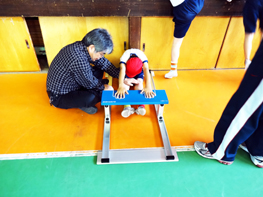 「長座体前屈」は、体の硬い子には少々辛いテストになります。