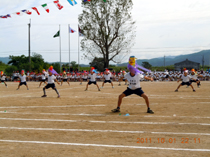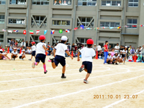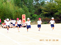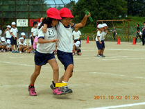 「二人三脚」は、二人三脚で行うリレーです。多くの子ども達がとても速く走り、見ている人達を驚かせていました。