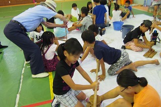 今日の放課後子どもプランは山城郷土資料館から講師をお招きしての火おこし体験でした。