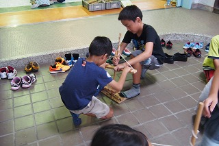 東っ子たちが、「火」を起こそうと一生懸命挑戦しました。お世話になりありがとうございました。