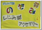 <写真1.2:シジミ材アクセサリー。ボランティア「のぞみ」の方々が担当されました。とてもきれいで上品なアクセサリーが出来て、子ども達も大喜びでした。>