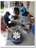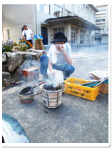 <写真3.4.5.6:お手玉と、焼きもちです。火をおこしたり焼いたり、大変な作業をしてくださいました。>