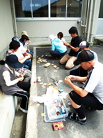 つり大会の準備に、ふるさと田辺東体験学習委員の皆さんが来られました。