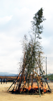 <やぐらの足下に、点火しました。火がついたら、すぐ待避です。>