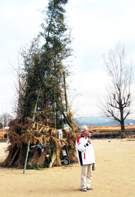 1月14日に、「左義長(さぎちょう)」を学校のグランドで行いました。