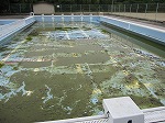 1年間でどろどろになったプール、先日は1年生がヤゴ捕りをしました。