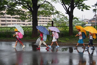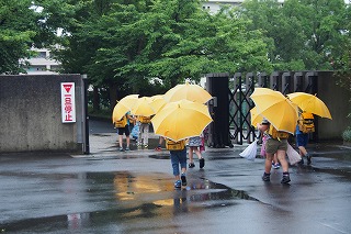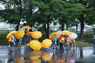 梅雨の間、まだまだ雨の日が続きます。子どもたちも傘をさしての登下校、一層の交通安全を!