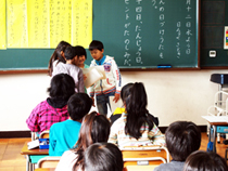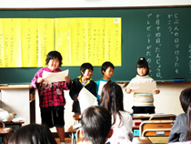 写真は自分たちで作った「日付け歌」の発表の場面です。