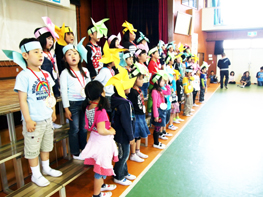 代表の児童がお礼を言い、1年生全員でお礼の歌を歌いました。