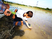水を張った田んぼの土の感触に、子ども達は大喜びでした。