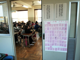 大きな声で挨拶できた子にはカードを渡すのですが、そのカードは教室に掲示されています。