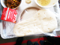 いろいろな大きさのナンがあり、カレーなどをつけて食べる事が多いようです。