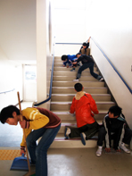 <階段を掃除してます。いつもより力が入っています。>