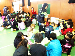 |  | |  | | 来週の1週間は「通学班チェック週間」です。 次の6点を班長が自分でチェックします。 1 あいさつができたか。 2 出発時間までに集まれたか。 3 出発時間より早くでなかったか。 4 叛旗を広げて、横断歩道で班員を渡せたか。 5 安全棒をかぶってきたか。 6 ならんで登校できたか。 全校児童でチェック項目を確認しました。