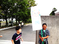 のぼりを作り、登校してくる人達に大きな声で挨拶をします。