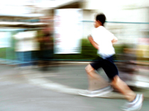 <写真は、見事なスピードでゴールに向かう高学年児童>