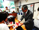 6月19日(水)、本校でその贈呈式が行われました。 財団法人日本公衆電話会から3名の方々が来校され、5年生の代表2名の児童に手渡されました。 「『こども手帳を』大切に使います。ありがとうございます。」「自分の身を自分で守れるよう、勉強します。ありがとうございました。」と、しっかりと子ども達はお礼を言うことが出来ました。