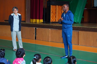 ☆水曜日は英語の日!新しい英語のALT:シェボーン先生の紹介です。英語でお話する先生の言葉をしっかり聞いて理解しようとしている人が多く見られました。