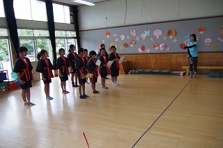 ★3年生が手作り招待状を田辺東幼稚園にお届けしました。表現のそでふれ!も踊りを一部披露しました。大きな小学校の運動場で「ようい・ドン!」元気に走りに来てください。