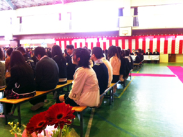 |  | |  | | 3月21日、卒業式をおこないました。 卒業生も在校生も、大変立派な態度で式に臨んでいました。 しっかりとした子ども達の態度に、感動いたしました。 <写真は、在校生のお別れの言葉を聞く卒業生達の様子を写したものです。>
