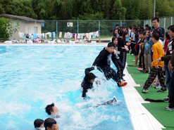 写真1:服を着たまま、急に水中に落ちる体験