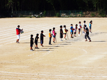 <写真2:運動場で練習です。きれいに並べました。>