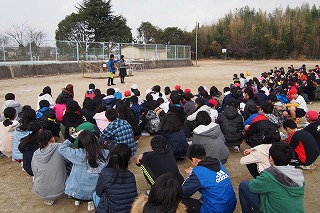 阪神淡路大震災の発生した1月17日、毎年この時期に「地震の避難訓練」を行っています。大地震の教訓を忘れず、訓練を繰り返し少しでも安全に避難できるように指導しています。「休み時間」に色々な場所にバラバラでいる時も、一人一人が安全に避難することを目標にしています。