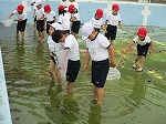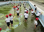 さっそく1年生は、どろどろの水の中に入りました。