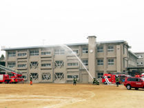 <放水訓練は、とても迫力がありました。屋上にまで届く水の勢いに、圧倒されました。>
