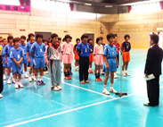 式の中で、市長・教育長の励ましを受け、東小ハンドチーム代表選手が決意を立派に発表しました。