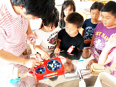 校内の色々な場所で、隠された文字を探したり、ゲームをしたり、シャンリークイの班で力を合わせて取り組みました。