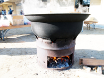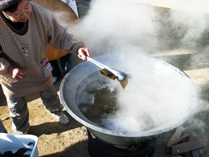 写真の大鍋で、参加者全員分の団子汁を作りました。