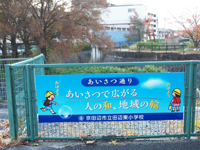 かわいいイラストと、あいさつを呼びかけるメッセージが書かれています。