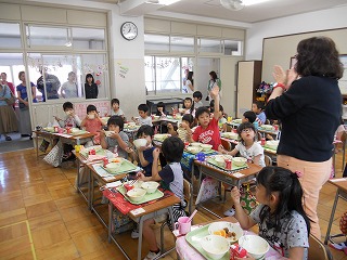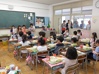 1年生の給食の様子を参観していただきました。
