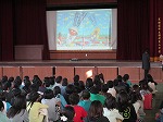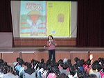 図書館教育を進めている本校教員及び図書館司書が、大きなスクリーンい映像を映しながら、読み聞かせをしました。