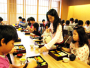 友達にお茶を入れてあげる面倒見の良い子が、結構いました。 わいわいと、楽しく昼食弁当を頂きました。
