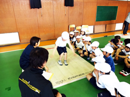 着地後、尻餅をついたり、後ろに手をついたりすると、そこまでの距離を測ることになるので、上手に着地をしなくてはなりません。