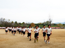低中高学年毎に、時間差をかけてスタートします。トラックを4分の3周して、グランドの外に子ども達は飛び出していきました。先頭集団は、かなりのスピードです。あっという間に、全員グランドから姿を消しました。