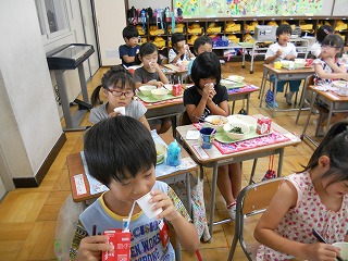 京田辺市の名産品である玉露を子どもたちにも味わってもらおうと、今年度も「水出し玉露」を給食の時間に頂きました。さっぱりとしたお茶の旨味に、東っ子たちも「おいしい!」とお代わりをしていました。